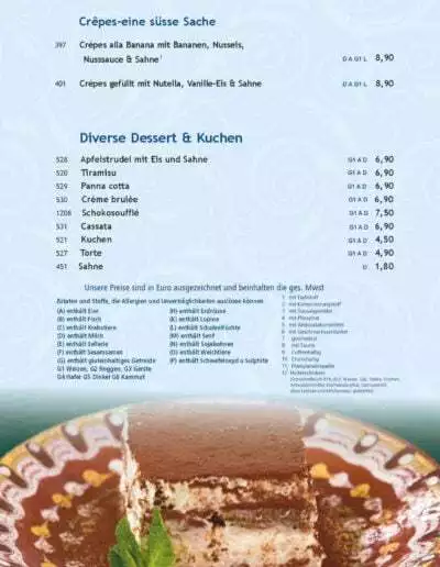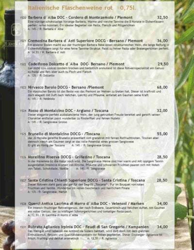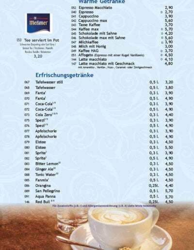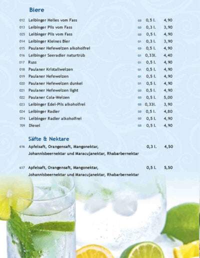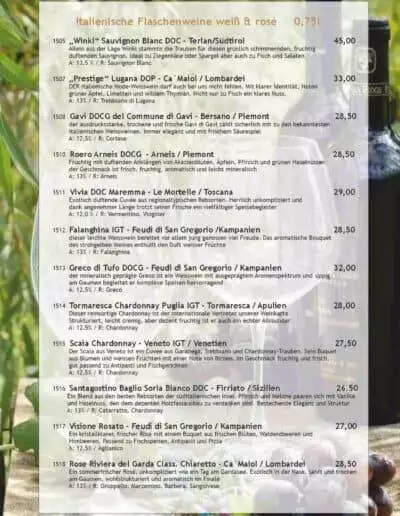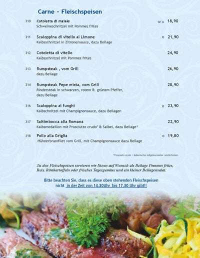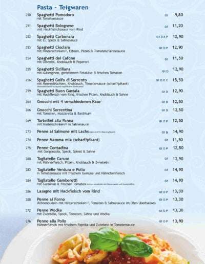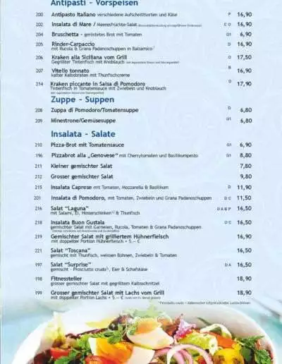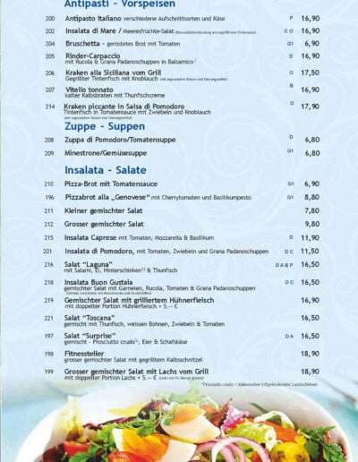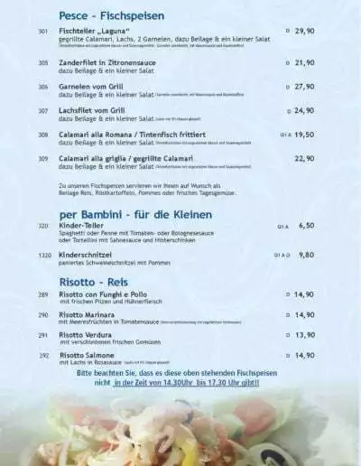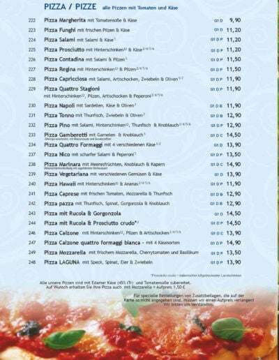 Die Speisekarte im Ristorante Pizzeria Laguna